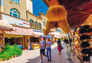 阿熱亞民俗文化街有多個巴扎,分別是首飾巴扎、花盆巴扎、坎土曼巴扎、木器巴扎、維藥巴扎、帽子巴扎。路上隨處可見妝扮時尚的當?shù)厍嗄?,女孩子們穿著破洞九分牛仔褲?/span>