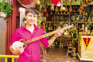 今年 22歲的玉買爾江·玉山。2005年冬天我見到他的時候,他邊上學邊在樂器作坊當小學徒,現(xiàn)在他已經是一家商鋪的老板了。他既能制作樂器,又是出色的音樂人。隨著游客量不斷增長,他今年收入頗豐。