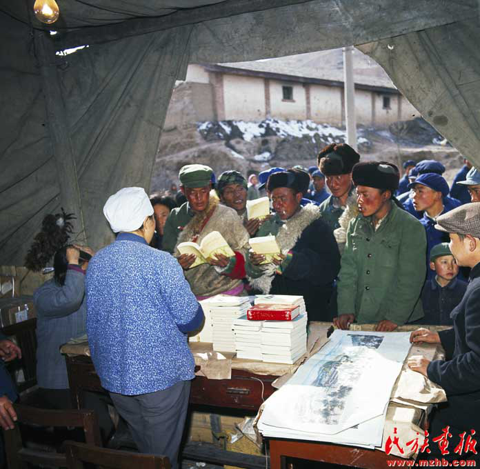 1978年5月,《光明日報》發(fā)表的特約評論員文章《實踐是檢驗真理的唯一標準》掀起了席卷中國的真理標準大討論。1978年12月18日至22日,黨的十一屆三中全會在北京舉行。全會作出了把黨和國家的工作重點轉移到經(jīng)濟建設上來、實行改革開放的歷史性決策,實現(xiàn)了新中國成立以來黨的歷史上具有深遠意義的偉大轉折。同年11月,青海省委宣傳部召開大會,為在“文革”中被打成“大毒草”的藏族史詩《格薩爾》徹底平反。圖為藏族群眾喜購《格薩爾王傳》(中國民族圖片庫資料)