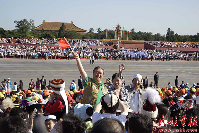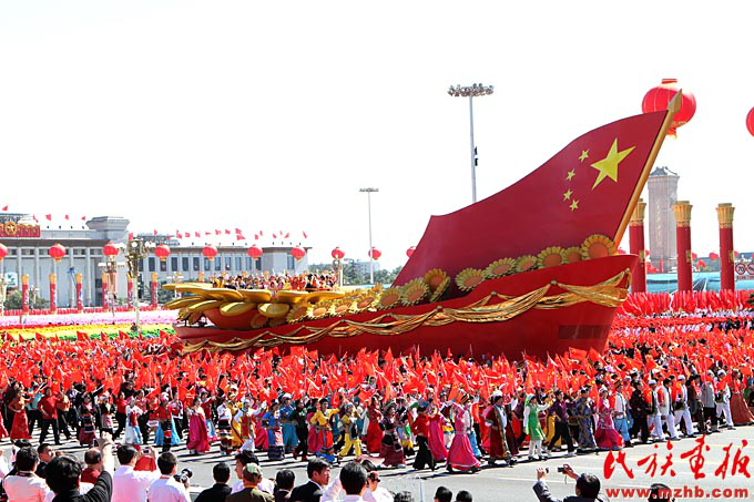 新中國成立以來,黨和國家始終堅持把馬克思主義民族理論同中國民族問題具體實際相結合,始終堅持把民族工作作為一項重大工作來抓,團結帶領全國各族人民共同團結奮斗,共同繁榮發(fā)展,開創(chuàng)了中國特色解決民族問題的正確道路,取得了舉世矚目的成就,積累了彌足珍貴的成功經(jīng)驗。2009年10月1日,在北京天安門廣場,20萬軍民以盛大的閱兵儀式和群眾游行歡慶新中國60華誕,圖為各民族學生參加“團結奮進”方陣群眾游行?!睹褡瀹媹蟆?009年第10期