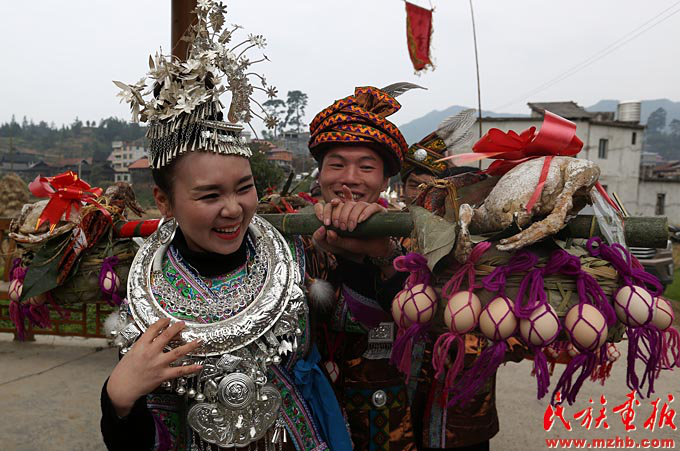苗族姑娘韋夢迪說:“現(xiàn)在人們生活水平提高了,活動的內(nèi)容也越來越豐富?;顒蝇F(xiàn)場的姑娘若對小伙子有好感,跟過去情況也不一樣了,只要人好就行。”林洞村培科屯老人何桂姣也有一樣的感受:“記得以前小的時候‘打同年’就是吹蘆笙、跳踩堂舞、對歌,現(xiàn)在‘打同年’活動越來越豐富,還增加了籃球賽、拔河比賽、聯(lián)歡晚會等很多節(jié)目。”每年寒假回家都要參加“打同年”的廣西大學(xué)學(xué)生潘金鑫來自融水縣懷寶鎮(zhèn),他說:“通過開展吹蘆笙、踩堂舞、文藝表演等傳統(tǒng)文化活動,加深了大苗山黨群干群之間、村寨各族同胞之間的情誼,增進(jìn)了民族團(tuán)結(jié)。我自己也特別能感覺到家鄉(xiāng)的發(fā)展變化,這讓我很自豪?!?/p>
