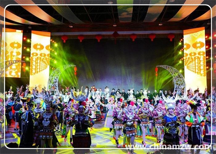 中國苗族網(wǎng)訊 2019年1月19日,由貴州省社科聯(lián)、貴州民族大學(xué)指導(dǎo),貴州省苗學(xué)會主辦,貴陽市苗學(xué)會、六盤水市苗學(xué)會、安順市苗學(xué)會、畢節(jié)市苗學(xué)會、銅仁市苗學(xué)會、黔西南州苗學(xué)會、黔東南州苗學(xué)會、黔南州苗學(xué)會、貴安新區(qū)苗學(xué)會、多彩貴州城建設(shè)經(jīng)營有限公司共同協(xié)辦的“迎新春-蝶韻楓彩鼓聲來”2019春節(jié)聯(lián)歡晚會,在貴州省貴陽市“多彩貴州城”展示中心隆重舉辦。貴州省9個州市及貴安新區(qū)苗族、布依族、侗族、土家族、彝族、仡佬族、水族、回族、白族、瑤族、壯族、毛南族、蒙古族、仫佬族、羌族、滿族等17個少數(shù)民族載歌載舞歌盛世,歡天喜地迎新春。 應(yīng)邀出席春晚的領(lǐng)導(dǎo)嘉賓有貴州省人大常委會原副主任、省苗學(xué)會老會長楊光林,以及貴州省人大常委會,貴州省社科聯(lián),貴州省民政廳,貴州省政協(xié),貴州民大,貴州省政協(xié),貴州省文化和旅游廳,貴州省總工會,貴州省文聯(lián)、貴州省人大、省委宣傳部、省民政廳,民宗委,社科聯(lián),貴州省八大民族學(xué)會的相關(guān)領(lǐng)導(dǎo)等應(yīng)邀出席并觀看演出。 春晚得到了貴州省委宣傳部領(lǐng)導(dǎo)關(guān)心,省委常委、省委宣傳部慕德貴部長對晚會專門作出重要批示,要求把春晚打造成一臺“思想性、藝術(shù)性、觀賞性統(tǒng)一的文藝晚會,豐富春節(jié)期間群眾性精神文化生活,營造歡樂、喜慶、團(tuán)結(jié)、祥和的節(jié)日氛圍”。 晚會緊扣“同心共筑中國夢,中華民族一家親”主題,圍繞共同團(tuán)結(jié)奮斗、共同繁榮發(fā)展主題,繼承和弘揚(yáng)中華民族優(yōu)秀傳統(tǒng)文化,積極展示貴州少數(shù)民族同胞改革開放40周年來翻天覆地的新變化,用少數(shù)民族原生態(tài)歌舞形式歌頌黨、歌頌祖國、歌頌民族大團(tuán)結(jié)。春晚節(jié)目,由貴州省各州市國家非遺保護(hù)節(jié)目、在中央春晚節(jié)目,由貴州省各州市國家非遺保護(hù)節(jié)目、在中央級、省市級比賽中獲獎的各民族原生態(tài)蘆笙舞、錦雞舞、銅鼓舞、板凳舞,苗族飛歌、古歌、大歌、情歌、絕技;民族盛裝走秀;非遺文化展示等26個節(jié)目組成。 晚會由240位貴州各地苗族演員,50位苗族、布依族、侗族、仡佬族、彝族、土家族、回族等17個少數(shù)民族演員,在主持人的開場白介紹中,手持燈花、衣著盛裝在鼓點(diǎn)笙曲中步入會場。 接著,被國內(nèi)外譽(yù)為“東方迪斯科”的黔東南州臺江《反排木鼓舞》拉開笙鼓迎春的序幕,雷山國家級非遺節(jié)目《掌坳銅鼓舞》、《錦雞舞》,貴陽市花溪區(qū)《花鼓舞》、貴安新區(qū)原生態(tài)蘆笙舞《花坡韻》、黔南州《鼓龍鼓虎-長衫龍》、兒童舞蹈《跺月亮》、畢節(jié)市納雍縣蘆笙舞《滾山珠》、凱里原生態(tài)合唱《春之歌》、安順留守兒童合唱團(tuán)《又見桃花開》、金竹樂隊(duì)蘆笙組合《酒歌》、銅仁市絕技《紙上飛仙》、黔西南州《板凳舞》等,一個個節(jié)目精彩絕倫、美輪美奐,舞出少數(shù)民族同胞“美起來、笑起來、富起來、強(qiáng)起來”的精神風(fēng)貌、音容笑貌。最后,貴州省17個世居少數(shù)民族240名演員齊唱《愛我中華》,在“五十六個民族五十六朵花,五十六個兄弟姐妹是一家”的歌聲中把整臺晚會推向高潮,拉下帷幕。 此次春晚民族文化濃厚、明星歌手薈萃、演員陣容龐 此次春晚民族文化濃厚、明星歌手薈萃、演員陣容龐大、節(jié)目精彩絕倫。這些節(jié)目,涵蓋了東部方言、中部方言和西部方言各民族支系。遍及黔東南州、黔西南州、黔南州、貴陽市、安順市、畢節(jié)市、六盤水市、銅仁市和貴安新區(qū)。老藝術(shù)家榜香、青年歌手阿幼朵、潘興周、雷艷、楊一方、阿娜丹、歐桑、楊佳茜、楊祖桃、楊思雨、楊廷勇、吳敏成、阿蕾倩、余秋陽、阿依三姐妹、谷阿斯組合、阿依山娃組合等20多名少數(shù)民族歌星紛紛登臺獻(xiàn)藝,演員達(dá)300余人。 貴州省人大常委會原副主任、貴州省苗學(xué)會老會長楊光林說,春晚的舉辦,有利于提高民族同胞的戰(zhàn)斗力、凝聚力、感召力!春晚牢牢把握了“百姓富、生態(tài)美”兩條底線,通過晚會形式,吹響了少數(shù)民族同胞在黨中央和貴州省委、省政府的堅(jiān)強(qiáng)領(lǐng)導(dǎo)下,致力于決戰(zhàn)脫貧攻堅(jiān),決勝同步小康、實(shí)現(xiàn)鄉(xiāng)村振興的號角。是號召大家參與國家實(shí)施的“鄉(xiāng)村振興、脫貧攻堅(jiān)”任務(wù),努力實(shí)現(xiàn)貴州人民2020年和全國人民同步實(shí)現(xiàn)小康及全國人民正在努力實(shí)現(xiàn)的“中國夢”作出貢獻(xiàn)的動員令! 晚會當(dāng)天,春晚組委會主任、貴州省苗學(xué)會常務(wù)副會長張榮斌介紹:“迎新春-蝶韻楓彩鼓聲來”2019春節(jié)聯(lián)歡晚會,是推進(jìn)貴州省委、政府明確提出的“全力打造多彩貴州民族特色文化強(qiáng)省”戰(zhàn)略定位的實(shí)際行動;是著力推出民族民間文化精品,提升“山地公園省,多彩貴州風(fēng)”影響力和美譽(yù)度的良好平臺;是增強(qiáng)少數(shù)民族同胞文化自信,打造“山地公園省,多彩貴州風(fēng)”的靚麗名片和文化品牌;是全省少數(shù)