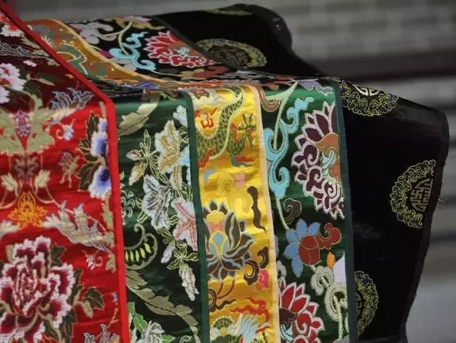 其次,它采用了雙經(jīng)軸織造,其中一組較為纖細的經(jīng)線(稱接結(jié)經(jīng)或面經(jīng)),用來接結(jié)正反面長浮的緯線,使織物花紋更為豐滿肥亮,質(zhì)地較經(jīng)錦和緯錦更輕薄,更適于日常的服飾和書畫的裝裱。