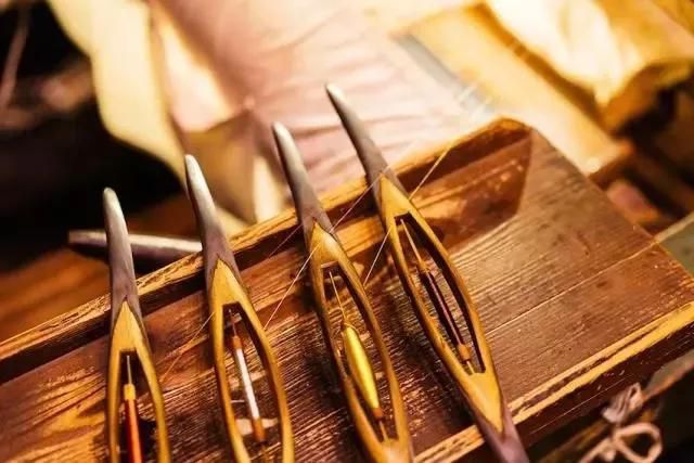 云錦工藝獨特,用老式的提花木機織造,必須由提花工和織造工兩人配合完成,兩個人一天只能生產(chǎn)五到六厘米,這種工藝至今仍無法用機器替代。
