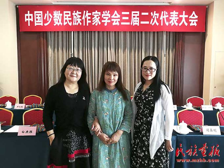 帕蒂古麗(中)出席中國(guó)少數(shù)民族作家學(xué)會(huì)第三屆二次代表大會(huì)