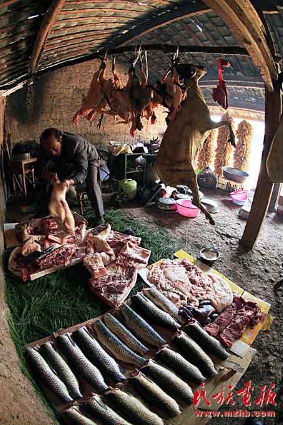 晨光中,幫忙操辦婚宴的婦女