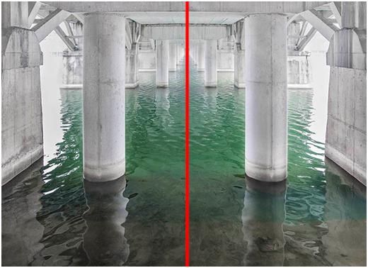 除了縱向?qū)ΨQ,還有水平對稱。水平對稱,一般適合拍攝上下對稱的題材,比如說水面的倒影。在太陽還沒出來的時候,已經(jīng)有亮光的時候,天空呈現(xiàn)出一種藍調(diào),水面又沒有高光,一切都是那么的寧靜,因為藍色是讓人很安靜的一種顏色,很舒服。如果你看到了這時候水面的景色,倒影還不錯的話,不妨采用這種方式。