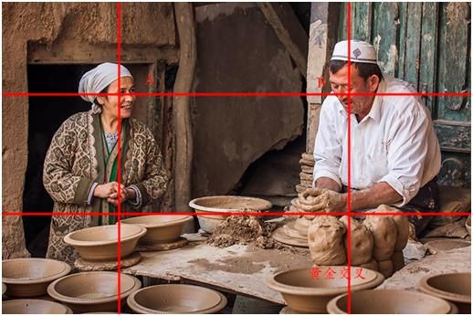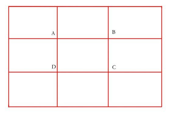井字形構(gòu)圖和黃金分割法構(gòu)圖是什么意思呢?就是在拍攝的時候,拍攝主體也就是興趣點,根據(jù)現(xiàn)場的情況,放在這ABCD這四個位置上,這樣看起來畫面是比較舒服,是比較協(xié)調(diào)的,比如說你拍攝一個人,人頭應(yīng)該是在交叉點上。