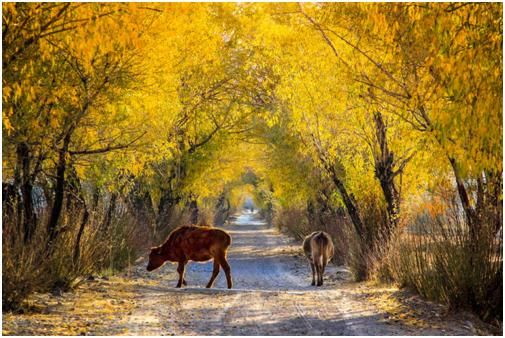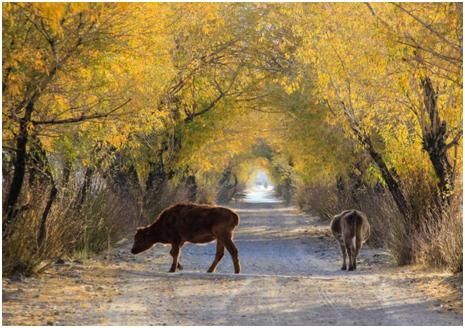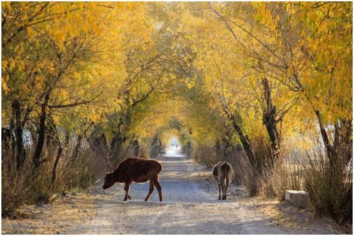 第二點,拍攝時機的把握上還是差了一點,應(yīng)該在牛走到比較亮的地方,才去拍攝,這樣主體會亮一些,在晨光的照耀下,金黃色的毛色也會更醒目。