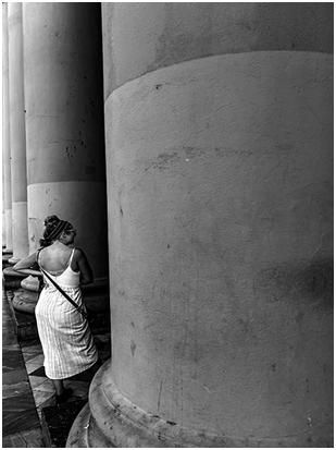 第一張圖也是在街上拍的,女人肯定在與柱子后面的人在交流,是什么樣的人?他們在做什么?其實都留給了觀者,這就屬于開放式構(gòu)圖。