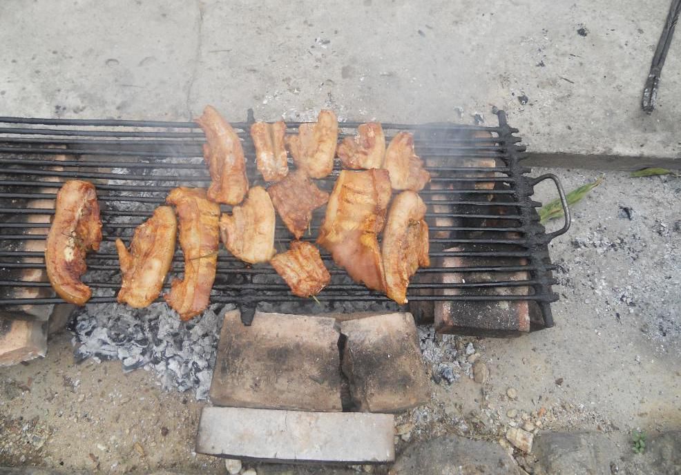 肉類多以豬肉、雞肉等蓄禽類肉蛋為主。逢年過節(jié),以豬肉為原料烹調(diào),能做出各種不同的花樣飯菜。隴川地區(qū)的風(fēng)味名菜“火燒豬”,做法和吃法獨(dú)特,別具風(fēng)味。在副食品種類中,瓜果、豆類、蔬菜的種類最多。蔬菜以菜園自留地種植為主,還兼采野生菜輔于飯食,如香菜、水芹菜、魚腥草、香椿、蕨菜、竹筍等,野生菌類也是阿昌族喜歡的副食品。阿昌族半山半壩地區(qū)的可食菌類品種繁多,共有50多種。