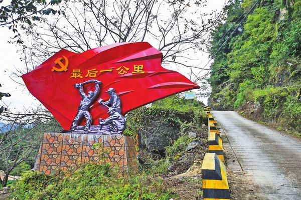 西灑鎮(zhèn)巖頭村,道路旁高聳的峭壁上鐫刻著兩個鮮紅大字——“實干”?!皻v時12年,我們在懸崖峭壁上硬生生劈出了4米寬進村路!”村民小組長李華明說,現(xiàn)在正與村民謀劃開辦“最后一公里”農家飯莊,村里的“最后一公里”展覽館也正在建設。