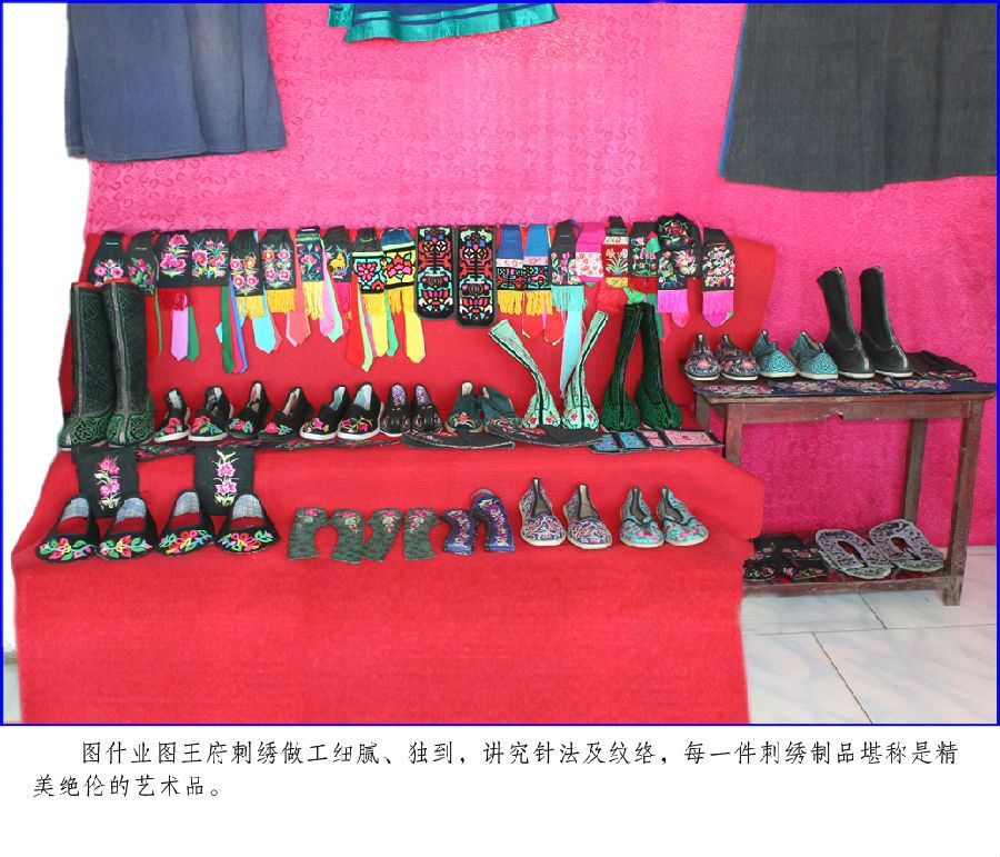 圖什業(yè)圖王府服飾包括:服裝、服飾、鞋帽及馬匹裝飾等?;蛸|(zhì)樸、清新,或漂亮、華貴,或錯(cuò)落有致;既有山水,又有花鳥,形象逼真,惟妙惟肖,色彩協(xié)調(diào),圖案精美;其做工細(xì)膩獨(dú)到,講究針法及紋路,每一件服飾制品堪稱是精美別致的藝術(shù)品。