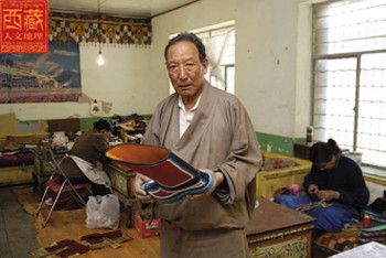 赤列塔青成年后,適逢西藏實行民主改革,拉薩市城北區(qū)的夏薩蘇和沖賽康各成立了一家“鞋業(yè)互助社”,八位鞋匠師傅每人掏50元錢入股,赤列塔青父子就這樣成了互助社的第一批成員?!昂髞淼氖虑樽兊煤軓碗s!”赤列塔青說。從企業(yè)名稱和辦公地點的多次變更,可以了解到搞民族手工業(yè)不是一件容易的事情。西藏平叛后這個鞋業(yè)互助社改名勝利合作社,后來又叫前進鞋帽合作社,再后來改叫城關區(qū)鞋一廠,現(xiàn)在的名字是彩泉民族手工業(yè)公司。原來的廠址在老沖賽康附近,后來搬到木鹿寺后面,現(xiàn)在駐進城北的佳村曲美,廠名變了,地址變了,不變的是人。赤列塔青認為,只要人在,企業(yè)就有希望。