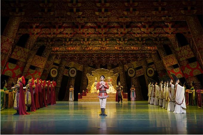 “大家可以看到,在這部舞劇中既有非常濃郁的盛唐風(fēng)格,也有非常鮮明的西域文化特點?!蔽鑴 秱鹘z公主》總導(dǎo)演左青表示。舞臺上的每一幕都有情景定位、情節(jié)助推、情感渲染、情調(diào)濡潤,兼具依托文本結(jié)構(gòu)的真情訴說和舞蹈本體的詩意表達,構(gòu)建起舞劇的整體形式感。