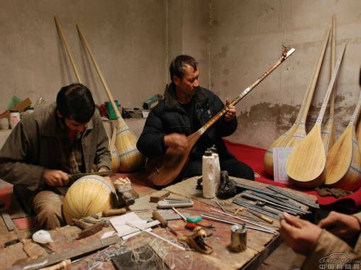“冬不拉”是哈薩克族的撥弦樂器,現(xiàn)在使用的冬不拉有樂隊(duì)使用的高音、中音、和低音冬不拉,為凸底,琴腹梨形,多為紅松木,銅、骨制品,采用銅絲弦,自成一組,可演奏豐富多彩的音樂作品,也可用來伴奏歌舞。高、中音冬不拉也可以獨(dú)奏,也可彈唱。另有民間冬不拉為平底樺木制,經(jīng)纏絲弦為音品,琴腹為鏟形,張兩根弦,用右手彈奏,為哈薩克牧民家中必備的樂器,自彈自唱或獨(dú)自演奏?!榜R和冬不拉是哈薩克人民的翅膀”。哪里有帳篷,哪里就有冬不拉的琴聲。