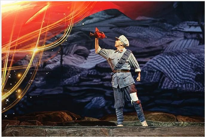 《花兒與號手》是一部以紅軍長征路過六盤山為背景創(chuàng)作的音樂劇,全劇展現(xiàn)了長征路上紅軍戰(zhàn)士的理想信念和“長征是宣言書、是宣傳隊(duì)、是播種機(jī)”這一核心思想,弘揚(yáng)了中國共產(chǎn)黨百年征程中展現(xiàn)出的無私無畏的革命精神。