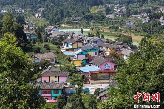 航拍貴州湄潭金花村“七彩部落”?!■暮陚?攝