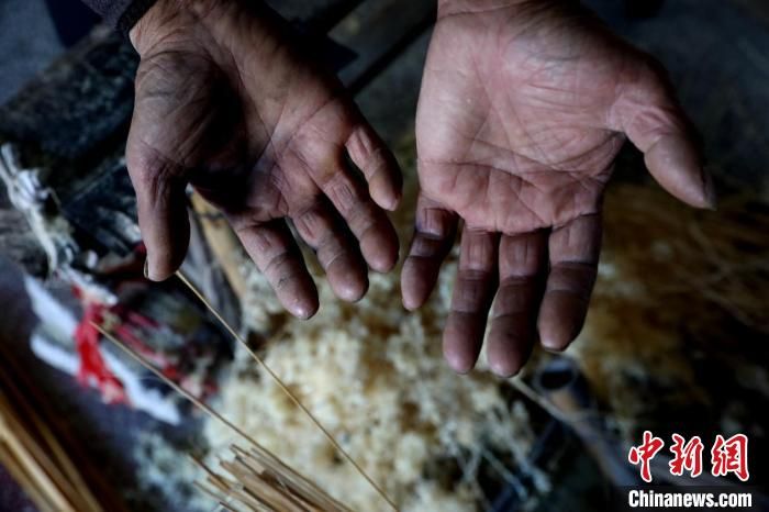 竹編手藝是個技術活,更是個傷手的活。黃大青傷痕累累的雙手,便是竹條經(jīng)年累月留下的“印記”。