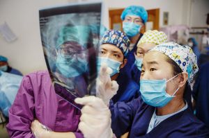 北京援藏醫(yī)生韓同英(右一)在北京市組團幫扶的拉薩市人民醫(yī)院對當?shù)蒯t(yī)生進行傳幫帶。