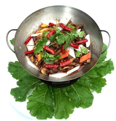 “蘿卜羊”為羅甸布依族人民新創(chuàng)制的一道享譽縣內(nèi)外的名菜。羅甸山多、雨多、草茂,氣候溫和,在這塊得天獨厚的適宜于發(fā)展畜牧業(yè)的土地上,當?shù)厝罕姵浞掷锰烊徊輬鲑Y源放牧黑山羊。羅甸黑山羊為羅甸特有的優(yōu)良羊種,肉質(zhì)細嫩,無值味,營養(yǎng)豐富,活羊遠銷廣東、廣西、湖北、湖南、四川、重慶等地。 “蘿卜羊”制作工序并不復(fù)雜,它以黑山羊肉和白蘿卜為主料,配以羅斛辣椒(本地土產(chǎn)辣椒)、木姜、砂仁、花椒等配料,通過合理加工調(diào)配而成。此道菜色澤悅目,羊肉細嫩,油而不膩,天膻味,蘿卜軟而不爛,營養(yǎng)豐富,口感極佳,食之能強身健體,延年益壽。此道菜為羅甸特有的一道名菜,它不僅為當?shù)貜V大群眾所鐘情,亦為四方賓客到羅甸必品嘗的一道美味佳肴。