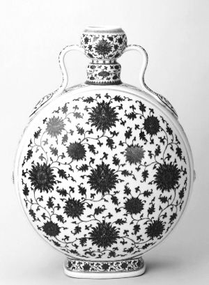 青花纏枝蓮紋如意耳扁壺,清乾隆。 故宮博物院藏