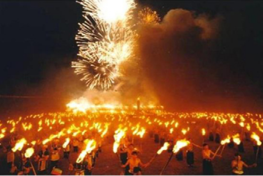 關(guān)于火把節(jié)的傳說較多,有紀(jì)念漢代酋長曼阿南之妻阿南夫人殉夫之事;有三國時群眾歡送諸葛亮南征得勝回成都之事;有南詔王皮羅閣“火燒松明樓”,柏節(jié)夫人殉節(jié)之事;還有紀(jì)念五谷之神“達(dá)撥”,祈求五谷豐登,六畜興旺之意。