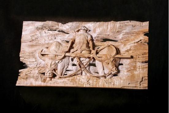 《門神》、《福滿門》這是劍川木雕在繼承傳統(tǒng)基礎上,對傳統(tǒng)的一種大膽嘗試性的發(fā)揚創(chuàng)作。這些作品的特點是,既保留了嫻熟的傳統(tǒng)木雕技藝,只是通過巧妙的組合,在現(xiàn)成的古老大門上雕出“門神”或用舊門框作為木雕作品的邊框,從而產(chǎn)生一種新的意趣,這種創(chuàng)意很適合當下都市的審美要求,也是劍川木雕未來發(fā)展中很值得提倡的新思路。木雕復制《張勝溫畫卷》