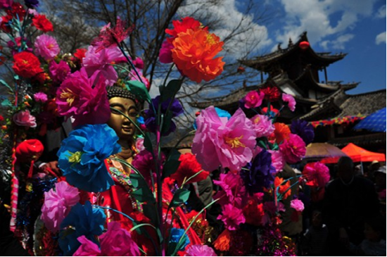 “二月八”是大理州劍川縣有著上千年歷史的白族傳統(tǒng)重要節(jié)慶之一,時(shí)間為每年農(nóng)歷二月初八日。其形成的主要因素是受佛教密宗文化的影響。相傳,農(nóng)歷二月初八日,釋迦牟尼生前為毗羅衛(wèi)國(guó)凈飯王的太子出皇宮到民間查看,看到人世間生、老、病、死等種種疾苦,遂立志創(chuàng)立佛教,普渡眾生。便于當(dāng)晚舍棄皇宮生活和太子的地位,踰城出家修行,尋求解除百姓種種苦難的道路,最后創(chuàng)立了佛教。明、清兩代至今,每年的二月八,廣大佛教信徒聚集在劍川縣城金華鎮(zhèn)和沙溪鎮(zhèn)寺登街,舉行盛大的紀(jì)念活動(dòng),抬著釋迦牟尼的太子雕像,一路鐘鼓齊鳴,焚香誦經(jīng),浩浩蕩蕩,漫游“四門”,常常聚集萬人,一般村嫗老婦也喜歡牽?jī)簬O參加游行,并把自家的孩子裝扮成“太子”,以沾“佛”氣。