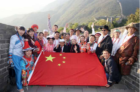 2017年全國(guó)少數(shù)民族參觀團(tuán)的各族代表參觀慕田峪長(zhǎng)城。(民族畫報(bào)記者 娘吉加 攝影)