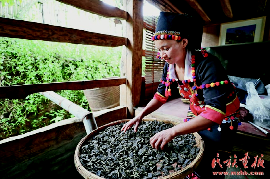 德昂族是一個(gè)有悠久種植茶樹和飲茶歷史的民族。圖為趙臘退家的酸茶工作室。