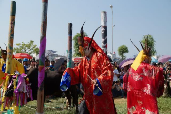 過節(jié)前一天,要“椎殺”一頭公牛,用牛頭、牛尾、牛腳、牛內(nèi)臟祭龍。祭時(shí)有法師喃經(jīng)、跳神。牛肉則分給各家各戶或拿到市上出賣,收入作為節(jié)日費(fèi)用。祭龍后二三天,各戶自拜祖先、三界仙、灶王、地主娘娘等,也是求神靈保佑五谷豐登。又用糯飯、粉蒸肉喂牛,以酬謝它耕作的辛勞,并給牛放假一天,讓它好好休息。嫁出去的女兒則帶上子女和禮品回娘家過節(jié),親戚朋友也常常登門賀節(jié),青年男女則盛裝聚會(huì)唱歌,選擇知音。現(xiàn)在過此節(jié),宗教迷信活動(dòng)多已廢棄。增加了文體競(jìng)賽或者開展有關(guān)生產(chǎn)生活方面的科普活動(dòng)等。