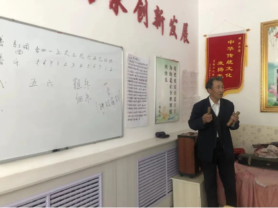 南文述從小酷愛音樂,深感傳統(tǒng)音樂的魅力,為了讓千年古韻律更好地綻放光彩,潤澤當(dāng)?shù)厝罕姷木袷澜?,南文述退休后長年收集、整理古樂曲相關(guān)資料,學(xué)習(xí)、傳承古樂曲演奏,在全縣范圍內(nèi)共收集到七十余首。商都縣大力挖掘和保護(hù)文化遺產(chǎn)工作開展后,為南文述免費(fèi)提供了工作室,南文述在此開辦了民族樂器培訓(xùn)班,為感興趣的群眾義務(wù)教學(xué)。目前已有學(xué)員60余人,2022年古樂曲申報(bào)成功為第七批內(nèi)蒙古自治區(qū)級(jí)非物質(zhì)文化遺產(chǎn)代表性項(xiàng)目,在當(dāng)?shù)厝罕娚顚拥木褡非笾邪l(fā)揮著越來越重要的作用。