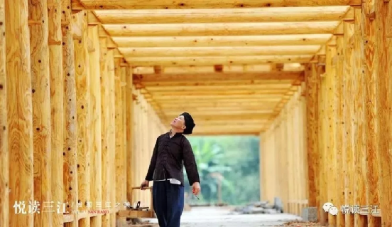 2003年,楊家第四代木構傳承人楊求詩,成功出師。由于深得祖?zhèn)骷妓嚕又趭^好學、悟性高,楊求詩很快成為當?shù)赜忻哪窘硯煾?。楊求詩建造的木建筑有鼓樓、風雨橋、吊腳樓、戲臺、寨門、涼亭等,不僅繼承“干欄”式建筑的優(yōu)良特點,而且內設吊腳,使建筑更加美觀,創(chuàng)立了別具一格的木建筑工藝體系。最近幾年,他陸續(xù)承接了一些外地的莊園、度假村、風雨橋、長廊、寨門等項目,但更多的還是修建本地鼓樓,三江的平懂、皇朝、獨峒的鼓樓均出自他的雙手。