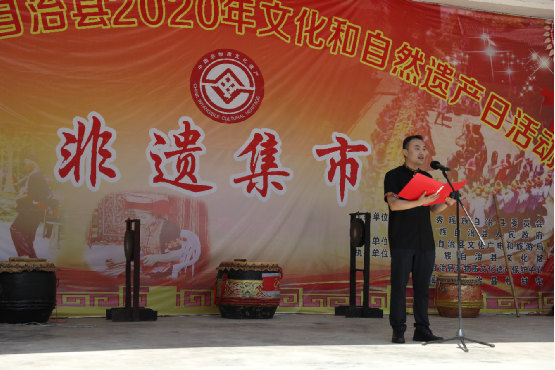 自治區(qū)非物質(zhì)文化遺產(chǎn)保護(hù)中心朱鳳立書(shū)記擊鑼宣布“非遺集市”開(kāi)市