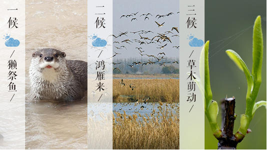 我國古代將雨水分為三候:“一候獺祭魚,二候鴻雁來,三候草木萌動(dòng)?!?此節(jié)氣,水獺開始捕魚了,人們將魚擺在岸邊先祭祀后食用;五天過后,大雁開始從南方飛回北方;再過五天,在“潤物細(xì)無聲”的春雨中,草木因地中陽氣的上騰而開始抽出嫩芽。從此,大地漸漸開始呈現(xiàn)出一派欣欣向榮的景象。