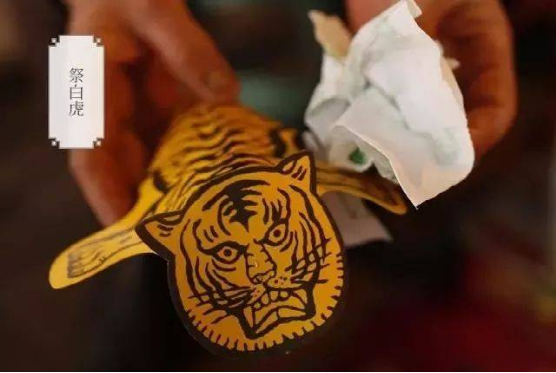 民間傳說白虎是口舌是非之神,每年都會(huì)在這天出來覓食,開口噬人,犯之則在這年之內(nèi),常遭邪惡小人阻撓前程,會(huì)百般不順。為了自保,在驚蟄當(dāng)天拜祭用紙繪的老虎,紙老虎一般為黃毛黑斑紋, 口角畫有一一對(duì)獠牙,拜祭時(shí),需以豬血喂之,使其吃飽不再出口傷人,再以生豬肉抹在紙老虎的嘴上,使之充滿油水,不能張口說人是非。