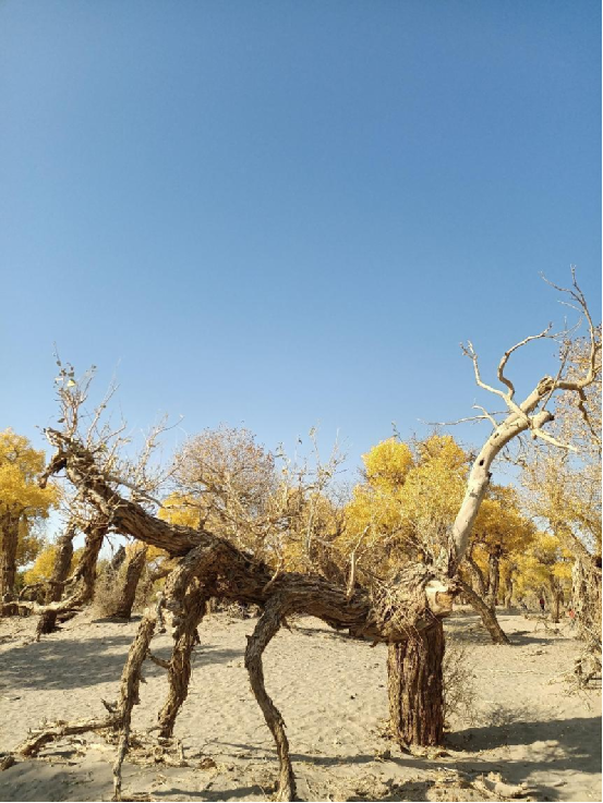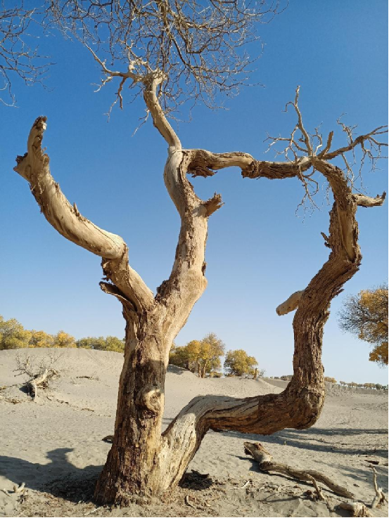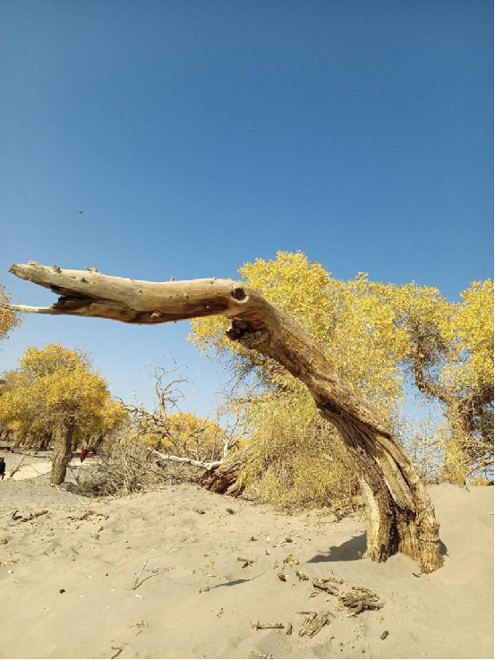 胡楊,又稱胡桐、英雄樹(shù)、異葉胡楊、異葉楊、水桐、三葉樹(shù),是生長(zhǎng)在沙漠中的樹(shù)種,它耐寒、耐旱、耐鹽堿、抗風(fēng)沙,有很強(qiáng)的生命力。