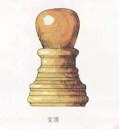 在建筑物的頂部中心位置,尤其是攢尖式屋頂?shù)捻敿馓帲⒂幸粋€(gè)圓形或近似圓形之類(lèi)的裝飾,它被稱(chēng)為寶頂。在一些等級(jí)較高的建筑中,或者確切地說(shuō),在皇家建筑中,寶頂大多為銅質(zhì)鎏金材料制成,光彩奪目。