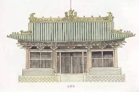 廡殿和歇山一樣是清式說(shuō)法,在此之前它又有五脊殿等名稱(chēng)。因?yàn)閺T殿式屋頂上共有五條脊,即,一條正脊和四條垂脊,所以稱(chēng)為五脊殿。
