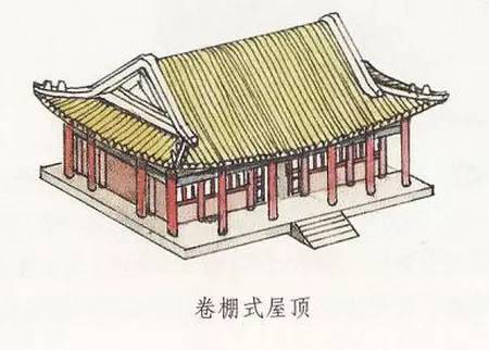 卷棚式屋頂也稱(chēng)元寶脊,其屋頂前后相連處不做成屋脊而做成弧線形的曲面,也就是說(shuō)卷棚式屋頂?shù)恼故腔⌒?,與普通的人字形屋頂不一樣,沒(méi)有屋頂端的正脊。譬如北京頤和園中的諧趣園,屋頂?shù)男问饺繛榫砼锸轿蓓敗?/p>