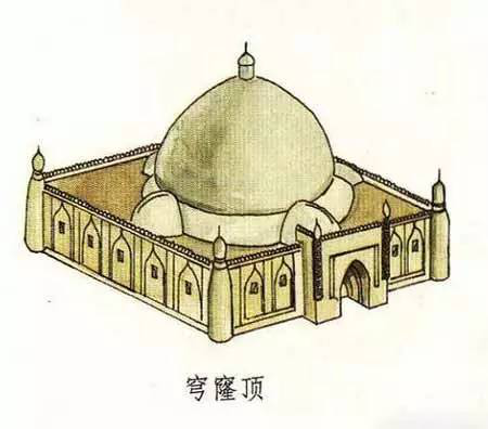 穹窿本身指天空,也形容如天空般中間高、四周下垂的樣子,同時(shí)也泛指高成拱形的建筑形式。穹窿頂就是穹窿式的屋頂,一般從外觀來(lái)看為球形或多邊形的屋頂形式。如,伊斯蘭教清真寺中的天房,室內(nèi)頂部呈半圓形,就可以叫做穹窿頂。此外,蒙古族的蒙古包等圓頂?shù)拿窬樱部梢詺w為穹窿頂建筑一類(lèi)。因此,穹窿頂也稱(chēng)圓頂。