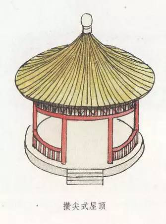 攢尖式屋頂沒(méi)有正脊,而只有垂脊,垂脊的多少根據(jù)實(shí)際建筑需要而定,一般雙數(shù)的居多,而單數(shù)的較少。如,有三條脊的、有四條脊的、有六條脊的、有八條脊的,分別稱(chēng)為三角攢尖頂、四角攢尖頂、六角攢尖頂、八角攢尖頂?shù)取4送?,還有一種圓形攢尖頂式,也就是沒(méi)有垂脊。