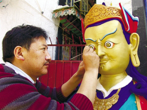 西藏自治區(qū)拉薩市城關(guān)區(qū)恰彩崗路11號(hào)是八廓街東面諸多巷院里一個(gè)極其普通的大院。在這里,一個(gè)集土建、唐卡繪畫(huà)、金屬雕刻、木雕、古藝建筑研究、西藏傳統(tǒng)手工藝技能培訓(xùn)為一體的國(guó)家文化產(chǎn)業(yè)示范基地——拉薩古藝建筑美術(shù)公司就坐落在這個(gè)古樸的大院內(nèi)。
