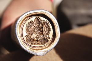 我在曼谷一家有40年歷史的佛像店“佛光工藝社”采訪時問到老專家這樣一個問題:泰國現(xiàn)在大概有多少種圖案的帕肯?所有聽到這個問題的人都是一聲驚嘆,然后笑說:“無數(shù)!”我非要問出個數(shù)來,他們便告訴我,泰國是一個歷史劃分復雜、族源廣博的國家,因此其包容性很強,雖然九成以上的人信仰佛教,但是婆羅門教、道教、伊斯蘭教、基督教等在泰國都被接納,還有本土的一些法術(shù)也不曾被丟棄。所以,每天每個來定做的人都會有不同材質(zhì)的要求,不同圖像、符咒的組合,僅一個工藝社40年來就已經(jīng)做過幾十萬種的圖案組合。我收藏的擦擦有不同年代、不同材質(zhì)、不同價值的,除去年代久遠的,頗有價值的就是一個藥擦,那是一個大威德金剛擦,專家說從被剝落的剖面看,里面有藥材的成分。我知道,在西藏,擦擦因材質(zhì)和制作人不同而有很大的區(qū)別。擦擦中最為稀有難求的一種叫“布擦”,那是寺廟僧人在保存活佛法體的時候,將那些浸透活佛法身血水的鹽巴或其它藥物和泥土融合后制成的。另一種較為珍貴的擦擦是活佛的骨灰與泥土摻混在一起制作而成的。還有一種藥物擦擦,是用不同的名貴藥材如珍珠、瑪瑙、藏紅花等藏藥合成制作,可服用治病。最普通的擦擦用一般的泥土制作,好一點的有膠泥、陶土、白泥等,這種擦擦成本低廉,在民間流傳最廣。