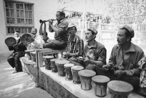“據(jù)我所知,它和月氏人有點(diǎn)聯(lián)系?”我想起曾經(jīng)看到的一個(gè)資料問道。艾克山·艾爾肯放下木棍,沉吟了一下說:“有兩種說法,一種是東傳說。約在14世紀(jì)以前,納格拉經(jīng)絲綢之路從阿拉伯地區(qū)東傳到古代西域,非常受歡迎,一下子就在維吾爾族民間廣為流行起來。后傳至中原,清代將其列入回部樂中,當(dāng)時(shí)稱為‘哪噶喇’。”他停頓了一下后,接著說:“還有一種是西去說,就是和月氏人有關(guān)?!?/p>