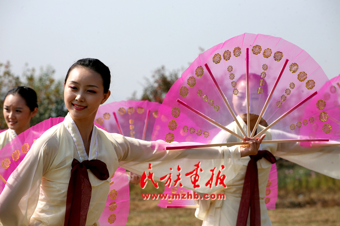 十月的延邊碧空如洗,大地歡歌;十月的山村層林盡染,稻谷飄香。這是農(nóng)民們最為向往的季節(jié),耀眼的陽光給剛剛收獲過的土地鑲上了一層迷人的金邊,累累碩果被婦女們輕快地端上了餐桌。在寬闊的體育場上,彩球升騰、人聲鼎沸,一場盛大的慶?;顒印r(nóng)樂舞表演即將拉開序幕……