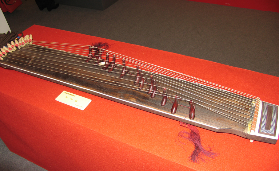 伽倻琴:朝鮮民族傳統(tǒng)弦樂(lè)器之首,是民族色彩很濃的彈撥樂(lè)器。它的形狀近似于中國(guó)民樂(lè)器古箏。伽倻琴由共鳴箱、琴弦、琴碼三部分組成。共鳴箱長(zhǎng)150厘米、寬25厘米、中間厚5厘米。質(zhì)料分別用梧桐樹(shù)板和樺木板制作。琴線(xiàn)用蠶絲制作,共13根弦,琴弦的兩頭各固定在琴頭和琴尾,在琴頭有弦枕。13根琴弦用碼子做支柱,琴頭可以左右移動(dòng),調(diào)節(jié)音階。伽倻琴富有表演力,是善于表達(dá)民族柔和情感的民間樂(lè)器。因此,伽倻琴?gòu)棾歉髯迦嗣裣猜剺?lè)見(jiàn)的一種表演形式。