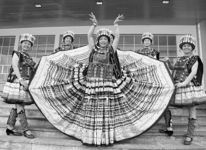 由廣西壯族自治區(qū)南丹縣文藝工作者自行創(chuàng)作編導(dǎo),由中老年人表演的白褲瑤風(fēng)情舞蹈《美麗的百褶裙》,于2013年6月赴京參加由中央電視臺綜藝頻道與中國舞蹈家協(xié)會共同舉辦的《舞蹈世界》欄目特別節(jié)目“舞蹈全民星”的錄制。舞蹈《美麗的百褶裙》通過藝術(shù)的手法,從不同角度展示了被聯(lián)合國科教文組織譽(yù)為“人類文明活化石”的南丹縣白褲瑤民族多姿多彩、內(nèi)涵豐富的服飾文化。