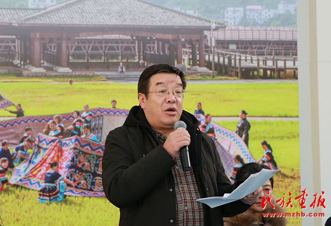 會上中國民族博物館黨委副書記、副館長張志文向少數(shù)民族作家們介紹了展覽,他說:“土家族是一個歷史悠久的民族,現(xiàn)在有835萬人口。土家織錦也有兩千多年的發(fā)展歷史,有250多種傳統(tǒng)圖案,是中國民間五大織錦之一,堪稱中國服飾文化中的奇葩。中國民族博物館從歷年征集收藏的300多幅清代以來的土家織錦中,選取了156幅精品土家織錦、21分鐘傳承人視頻和120余幅土家民族風情照片。我們和中國婦女兒童博物館合作舉辦了這個高品質(zhì)的專題展,旨在傳承和弘揚土家族國家級非物質(zhì)文化遺產(chǎn)?!?/p>